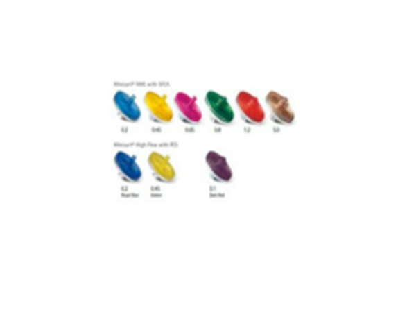 Minisart®NML針頭濾器,采用無(wú)表面活性劑醋酸纖維素(SFCA)濾膜,將高流速與極 低非特異吸附兩大優(yōu)勢(shì)相結(jié)合,同時(shí)具有 多種孔徑可供選擇,是所有pH在4-8之間 的水溶液過(guò)濾的選擇。Minisart® High Flow系列,采用改良聚■碘(PES)膜,過(guò) 濾速度快、耐受酸堿溶液(pH為1-13的水 溶液)。由于不對(duì)稱膜結(jié)構(gòu),PES自帶了 預(yù)過(guò)濾器的功能。Minisart® NML和High Flow都可通過(guò)環(huán)氧乙烷(EO)或伽瑪輻射滅 菌。另外,Minisart® NML通過(guò)CE標(biāo)準(zhǔn)認(rèn)證。
