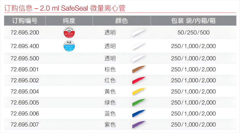高密封性的微量離心管適用于熱應(yīng)力或機(jī)械應(yīng)力處理。采取特制頂蓋設(shè)計,在混合或煮沸樣品時,即使在高離心力的環(huán)境下也能保持高密閉性。高密閉性微量離心管能在處理特別昂貴的試劑、 SDS 或其他揮發(fā)性物質(zhì)時提供雙重保障。